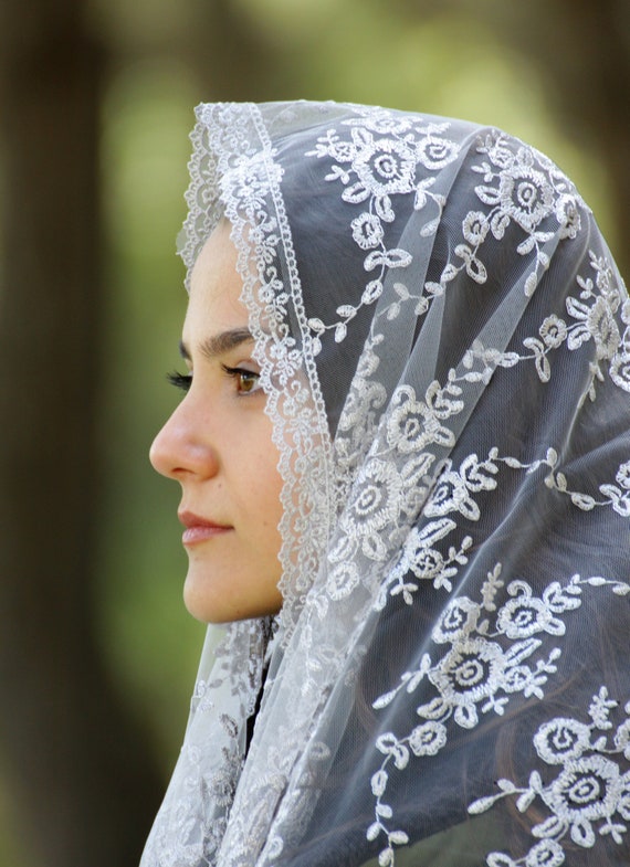 Luxury Head Covering Christian In Silver Rectangular Catholic Etsy Christian Head Covering Chapel Lace Veil Mantilla Veil