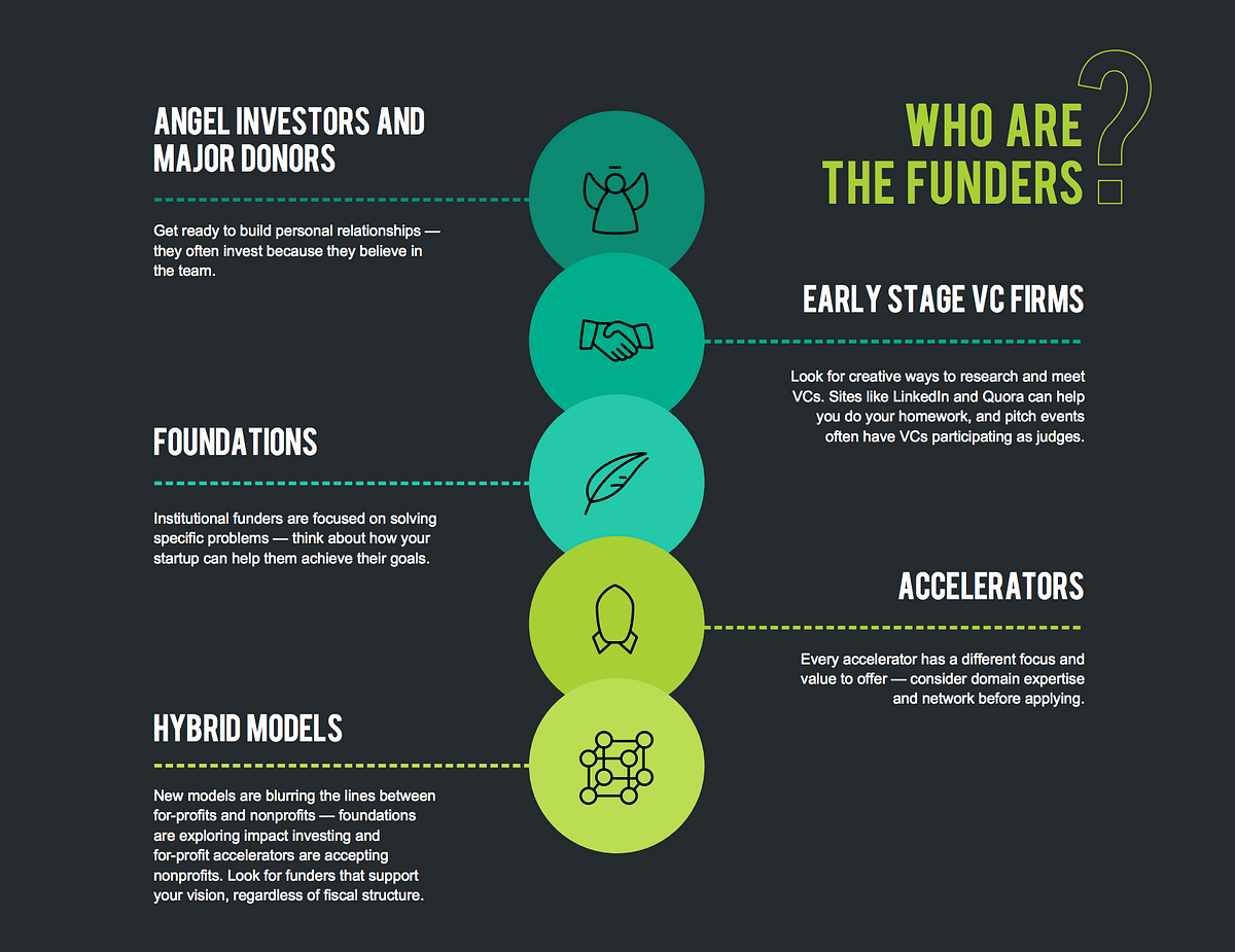 Entrepreneurs Lawyers and accountants AngelList Angel investor networks groups that aggregate individual investors Venture capitalists and investment bankers Crowdfunding sites like.