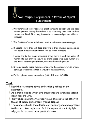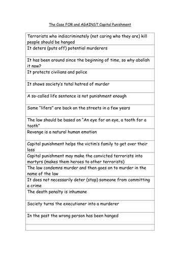 Arguments For Against Capital Punishment Task Teaching Resources