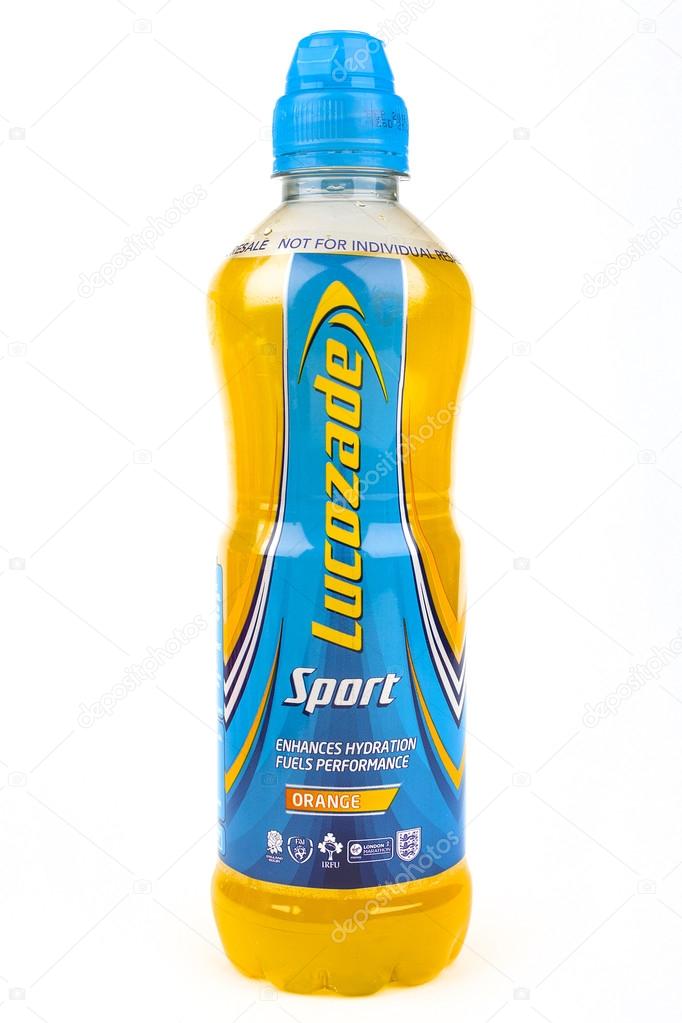 Bottle Of Orange Lucozade Sport Isotonic Drinks Stock Photo Alamy